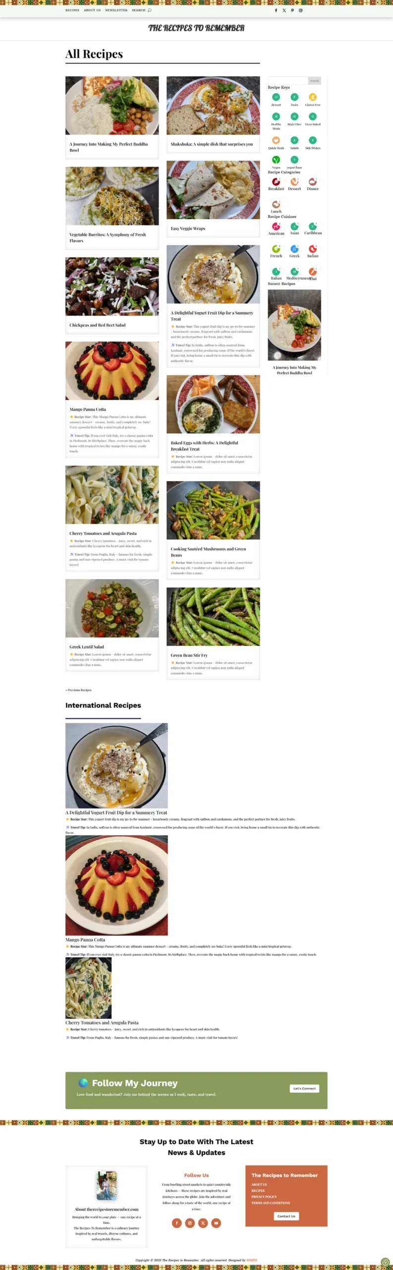 With an engaging layout and optimized performance, The Recipes to Remember stands out as a delightful culinary destination where visitors can explore flavors, traditions, and global inspirations with ease.